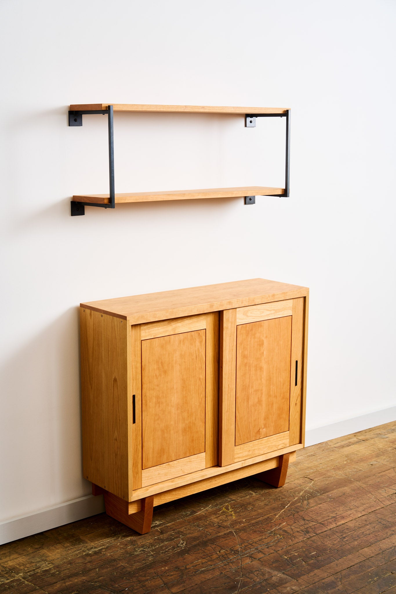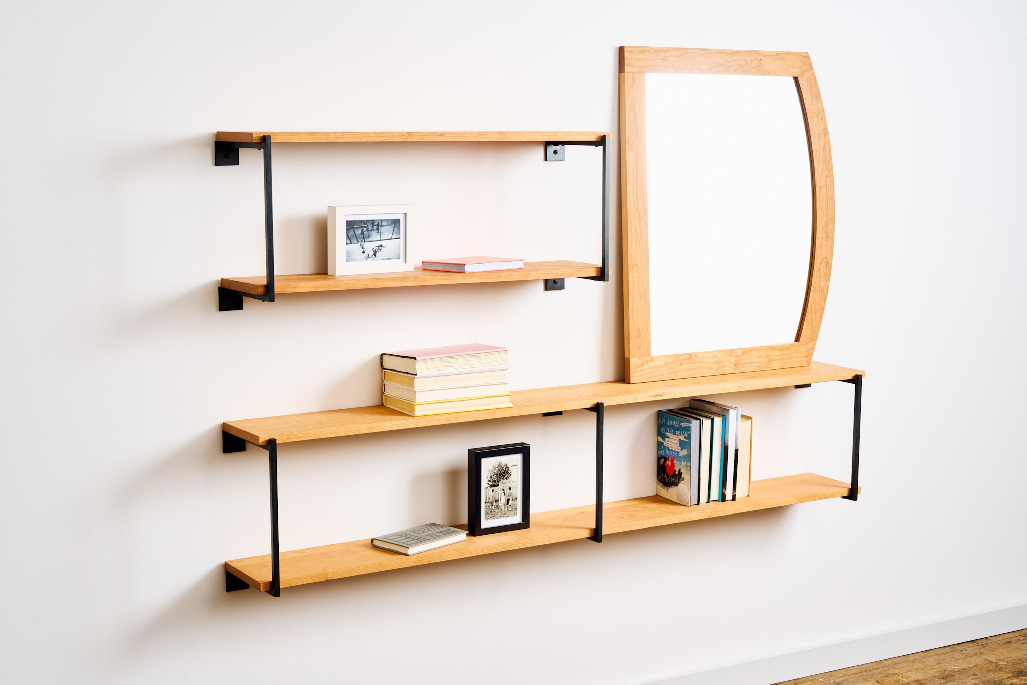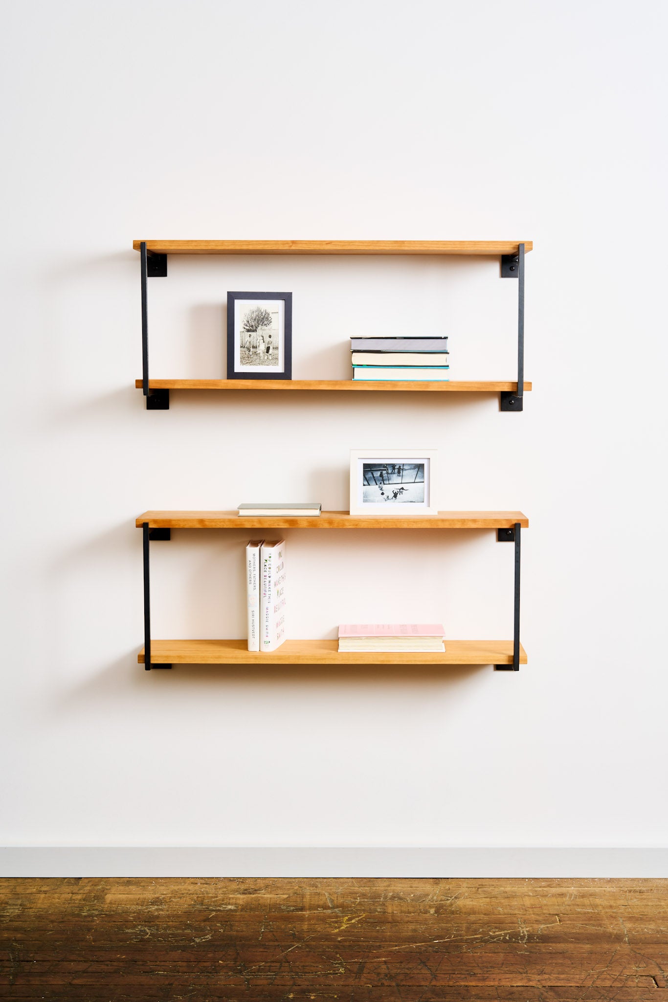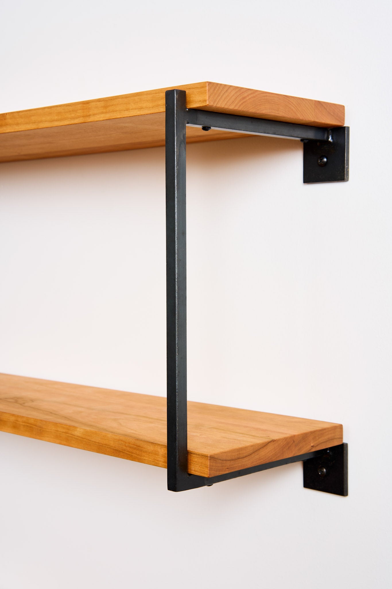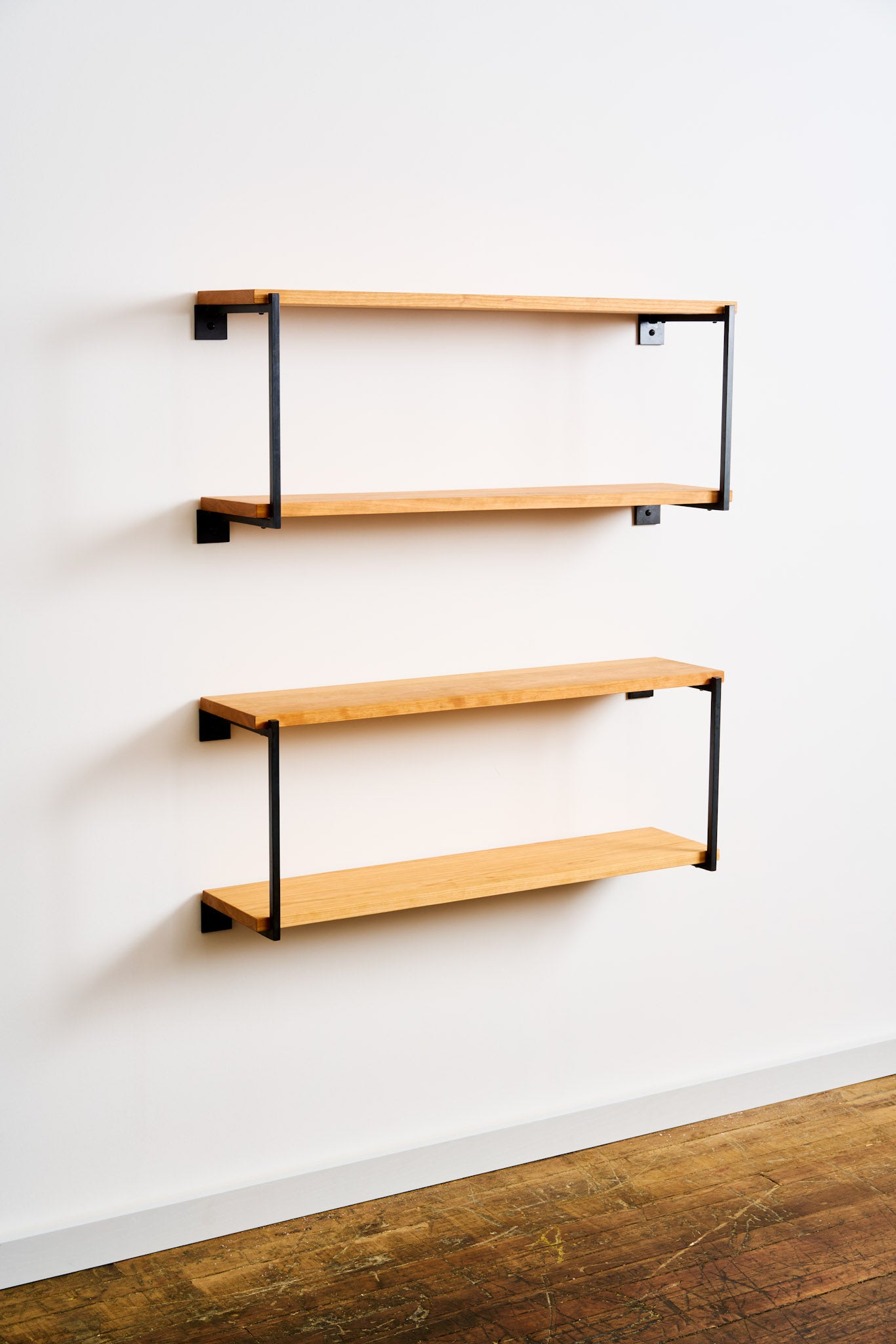 Designed by Benjamin Cheney of Flywheel Industrial Arts in Vermont, the Bracketed Wall Shelf blends thoughtful craftsmanship with modular utility. Each bracket is handcrafted from blackened American steel and finished with a hand-rubbed oil, offering both durability and timeless character.